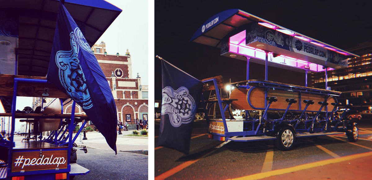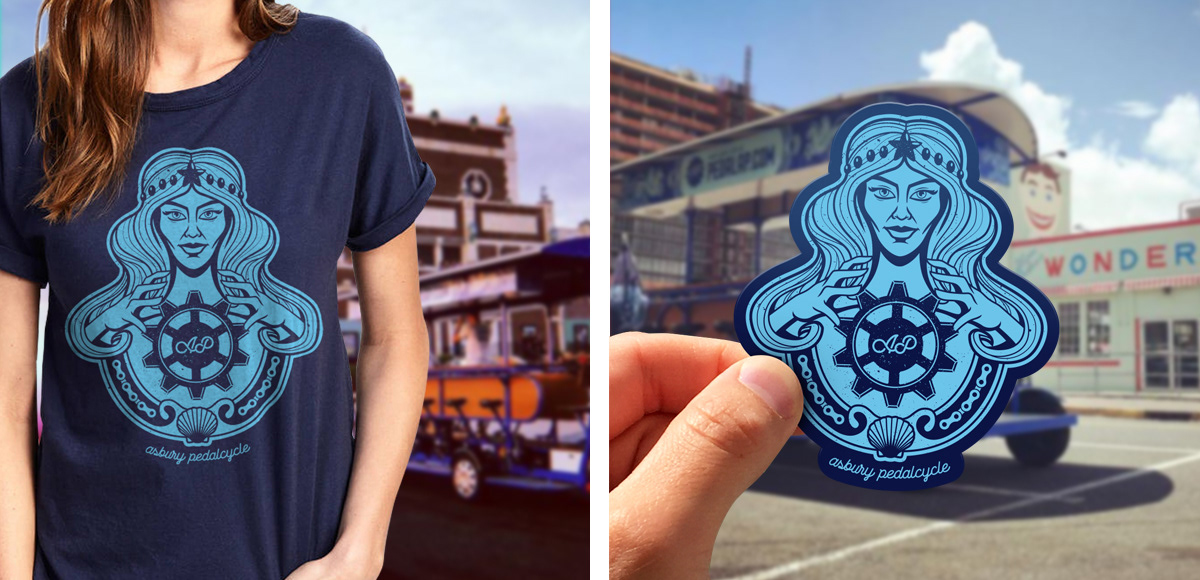 Identity, branding, vehicle wrap and merch design for Pedalcycle. Pedalcycle launched in the Summer of 2017 and has quickly become an iconic piece of Asbury Park, New Jersey. The unique Jersey Shore attraction is a 15 passenger open-air bike that riders pedal themselves. Book a tour at pedalap.com.