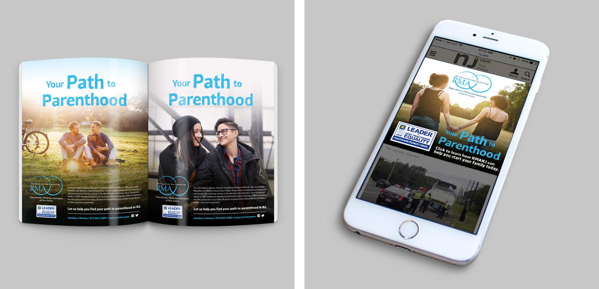 Print and digital advertising, logos, collateral, brochures, posters and signage for Reproductive Medicine Associates of New Jersey, a leading network of IVF clinics in New Jersey.